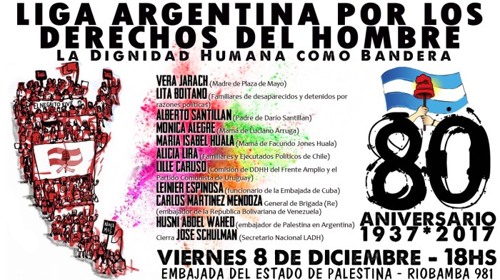 El próximo veinte de diciembre nuestra Liga cumplirá ochenta años, como muchos saben se considera que es una de las organizaciones sociales más antiguas del continente en esto de luchar por la dignidad y la libertad humana, nuestra intención es celebrar nuestra historia, y nuestro presente, con un acto de solidaridad con los pueblos que luchan por la paz y la dignidad humana en todo el mundo, como ha sido una constante de nuestra organización.
