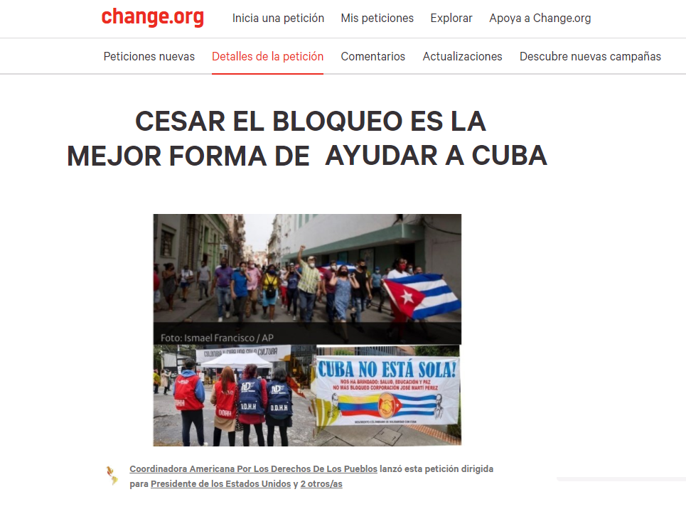 La Coordinadora Americana de Derechos de los Pueblos expresa su respaldo al Pueblo y al Estado Soberano de Cuba y rechaza las acciones desestabilizadoras a su soberanía y autodeterminación.
