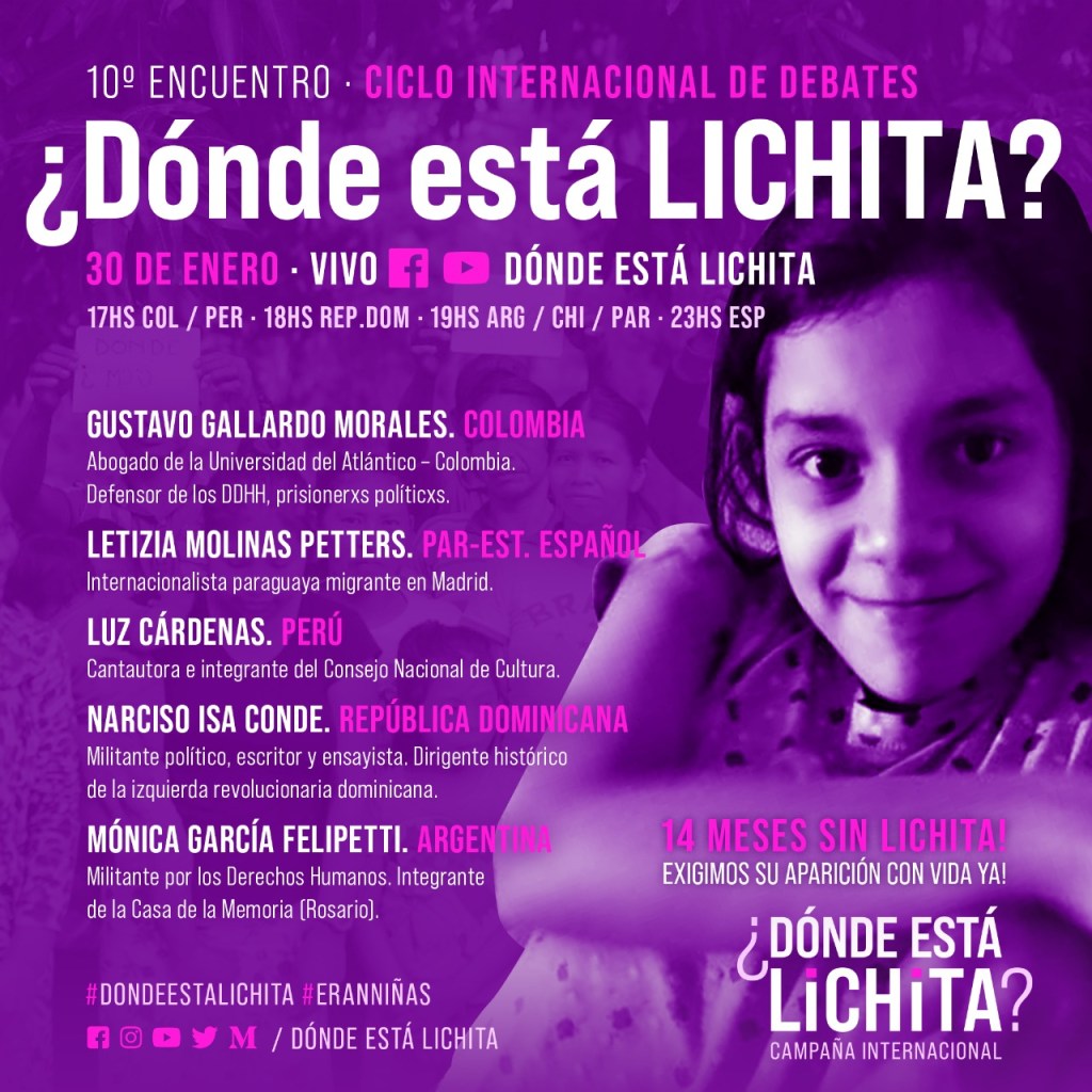 Este 30 de enero se cumplen 14 meses de la desaparición forzada de Lichita.
