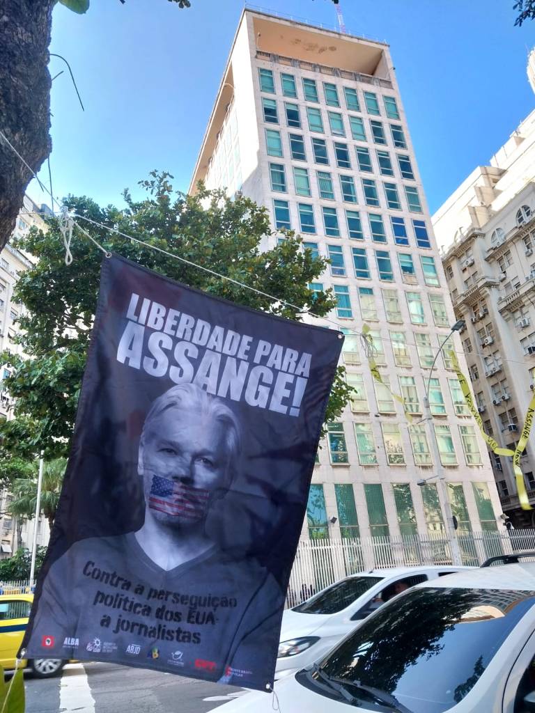 Este miércoles 8 de diciembre, diferentes organizaciones de derechos humanos se presentaron a las puertas del Consulado de Estados Unidos en Río de Janeiro exigiendo la liberación y no extradición del periodista australiano Julian Assange a ese país.