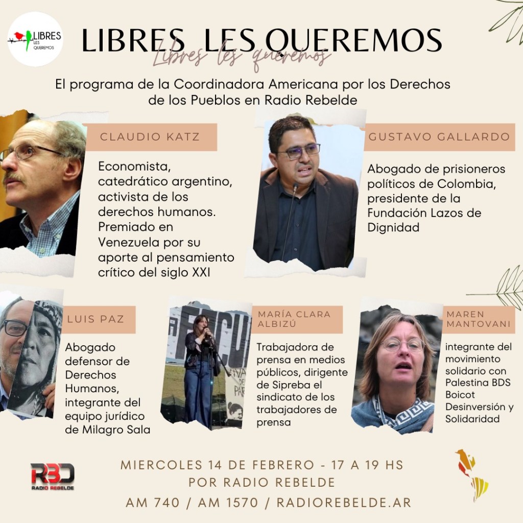 Libres Les Queremos – Un programa para dar voz a los presos y perseguidos políticos de todas las Américas. Coordinadora Americana por los Derechos de los Pueblos @CADP_DH En @Am740Rebelde | Desde Febrero | Todos los Miércoles de 17 a 19 Hs |