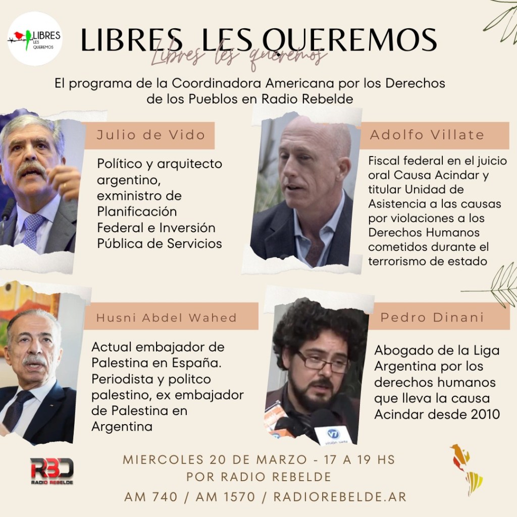 Las y los invitamos a acompañarnos y escuchar el Programa «Libres Les Queremos» de la Coordinadora Americana por los Derechos de los Pueblos en Radio Rebelde @LibresLesRadio En @Am740Rebelde | Todos los Miércoles de 17 a 19 Hs |