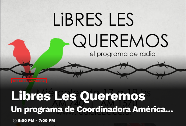 Las y los invitamos a acompañarnos y escuchar el Programa «Libres Les Queremos» de la Coordinadora Americana por los Derechos de los Pueblos en Radio Rebelde @LibresLesRadio En @Am740Rebelde | Todos los Miércoles de 17 a 19 Hs | – Escúchanos por http://Radiorebelde.ar Programa Libres les Queremos 09 de Octubre Entrevistamos a Gerardo Ferreyra. ingeniero. empresario. ex preso político de la dictadura … Continuar leyendo Programa Radial: Libres Les Queremos AUDIO